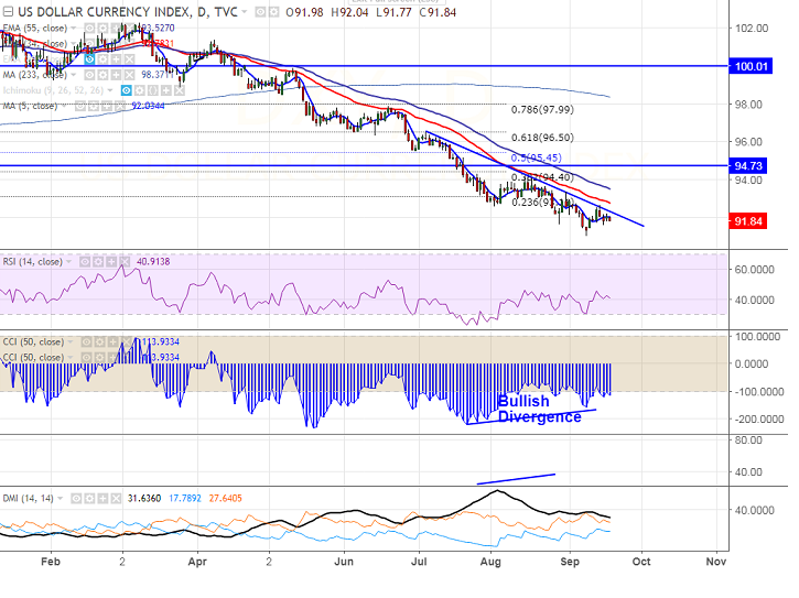 - US Dollar index is trading in narrow range between 92.66 and 91.58 for the past three trading session. It is currently trading around 91.90.