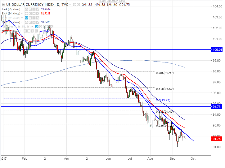 - US Dollar index is trading in narrow range between 92.66 and 91.58 for the past three trading session. It is currently trading around 91.75.