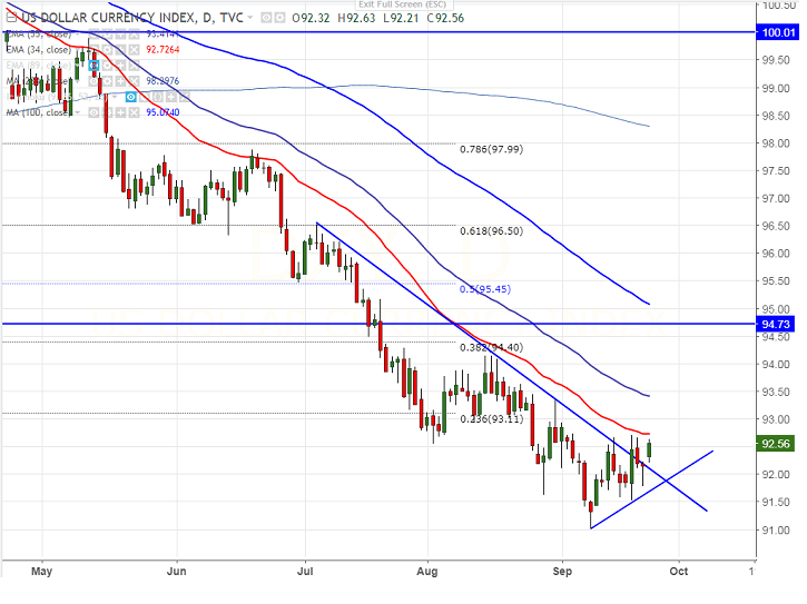- US Dollar index recovered sharply after hitting low of 91.53. It is currently trading around 92.58.