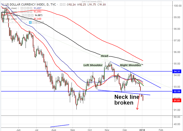 - DXY is trading extremely weak after breaking major support 92.35. The index declined sharply till 91.75 at the time of writing. It is currently trading around 91.85.