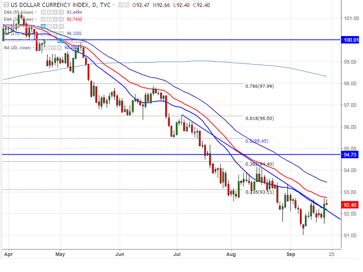 - US Dollar index is trading in narrow range between 92.66 and 91.58 for the past three trading session. It is currently trading around 92.41.