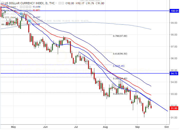 - On the lower side, minor support is around 91.62 low made on Aug 29th 2017 low and break below will drag the index down till 91/90.
