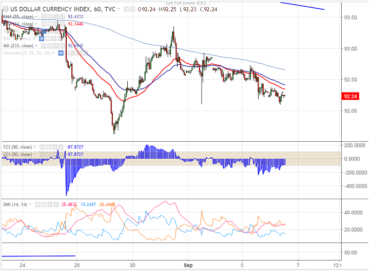 - US Dollar index has shown a minor jump till 92.93 after forming bottom at 92.10 on Friday. It is currently trading around 92.25.