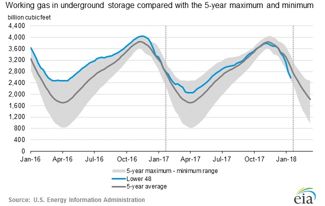- Gas price has moved higher as the inventories are declining fast due to the polar vortex and the market is currently pricing that the storage is likely to drop to 1.24 trillion cubic feet by the end of the winter.