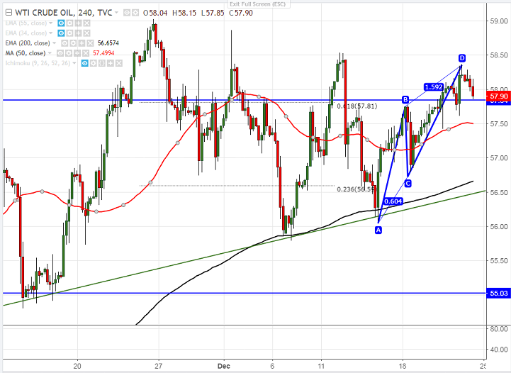 - On the lower side, near term support is around $57 and any violation below will drag the commodity till $55.79/$55.