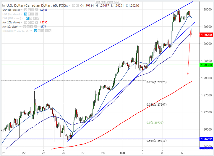 - USD/CAD continuing its bullishness and hits fresh 2018 high at 1.300 yesterday. The pair is showing a minor profit booking and declined almost 70 pips from the high. The Canadian dollar down almost 0.80% this month following 4.85% in previous month. It is currently trading around 1.29250.