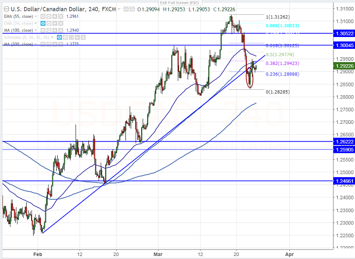 - USD/CAD has shown a good recovery after hitting low of 1.28298 yesterday. Canadian dollar has shown a good jump on Wednesday on optimism for NAFTA deal. Global trade war is expected to offset optimism about NAFTA deal.