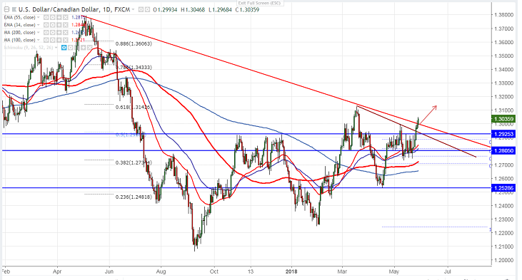 - USD/CAD hits 2 –month high after breaking 1.3000 at the time of writing from low of 1.27496 almost 300 pips on account of huge decline in oil prices. It is currently trading around 1.3040.