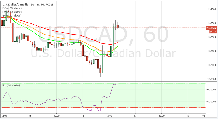 - The ongoing upside is set to continue for the pair as the Canadian dollar is weaker across board against most of the major pairs. Any decline is expected to be limited around 1.3840 as the support level at 1.3778 is set to hold the bears from falling further below.