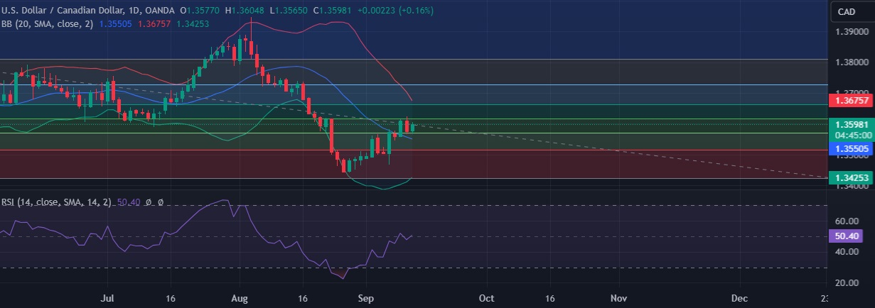 • Support is seen at 1.3572 (38.2%fib) and break below could take the pair towards 1.3500(Psychological level).