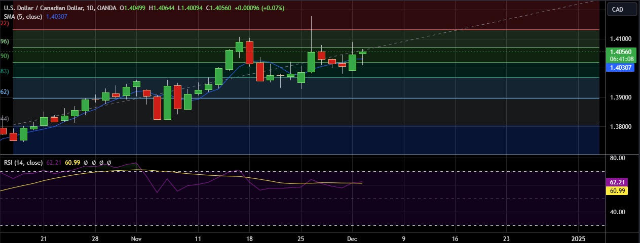 • Immediate resistance is located at 1.4087(38.2%fib), any close above will push the pair towards 1.4131(23.6%fib).