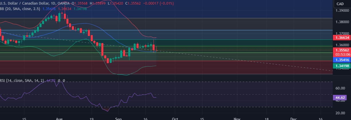 • Support is seen at 1.3536(38.2%fib) and break below could take the pair towards 1.3500(Psychological level).