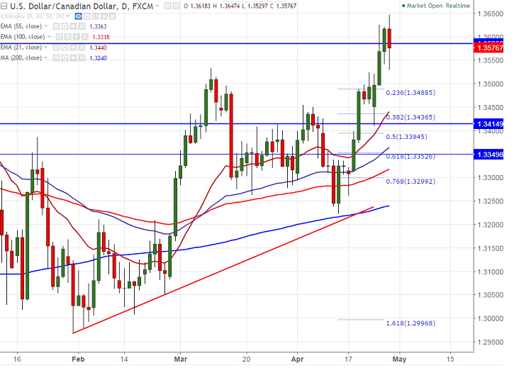 - The Canadian dollar recovered sharply after making a low of 1.36475 against US dollar after White house said that Trump will not terminate the participation in NAFTA immediately.