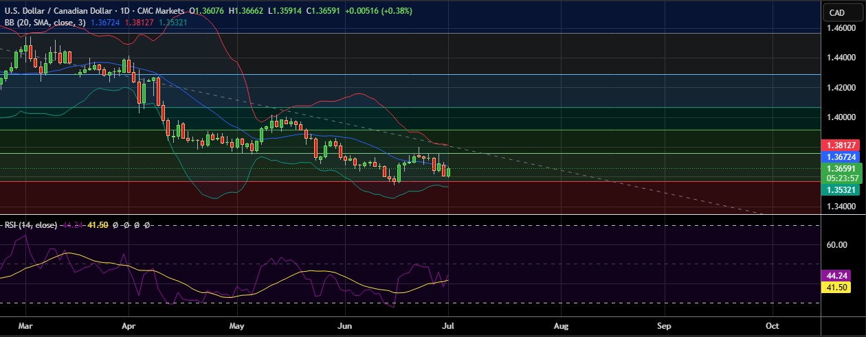 . • Immediate resistance is located at 1.3666(Daily high), any close above will push the pair towards 1.3750(38.2%fib).