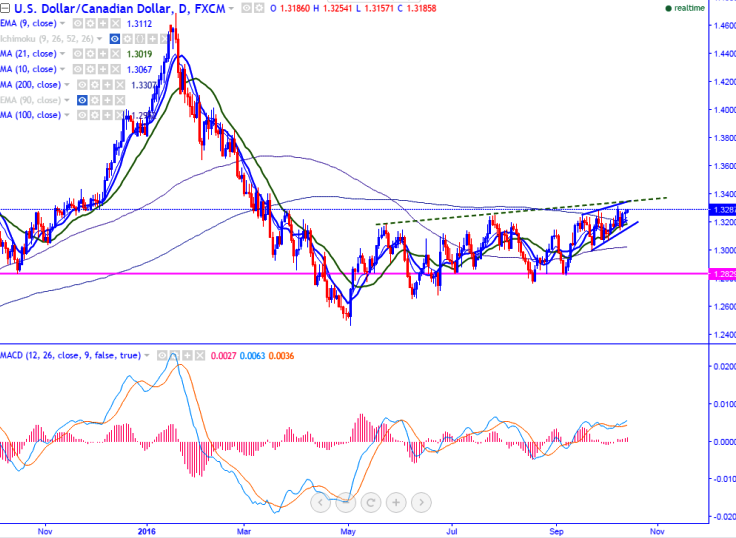 - Loonie has taken support near 200 –day MA and started to jump from that level. The pair jumped till 1.32950 from the low of 1.3208 and is currently trading at 1.32868.