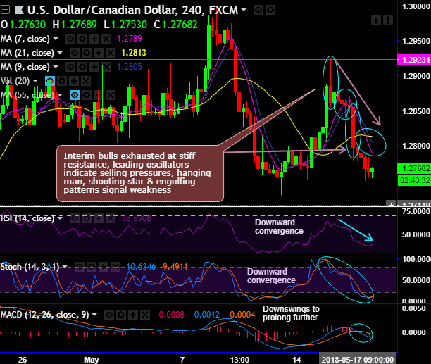 USDCAD forms back-to-back shooting stars at 1.2847, 1.2791 and now potentially at 1.2750 levels on weekly plotting that hampers previous consolidation phase and bears have resumed in the major declining trend.