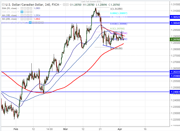- USD/CAD has declined once again yesterday after showing a minor jump above 1.29400. The pair hits high of 1.29434 yesterday. The minor dip was due to slight weaker than expected US ISM manufacturing data. US ISM manufacturing data came at slightly weaker than expected. It came at 59.3 last month compared to 60.8 for the month of Feb. The pair hits low of 1.28667 and is currently trading around 1.28764.