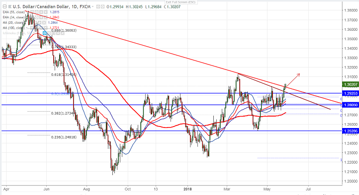 - USD/CAD hits 2 –month high after breaking 1.3000 at the time of writing from low of 1.27496 almost 300 pips on account of huge decline in oil prices. It is currently trading around 1.30130.