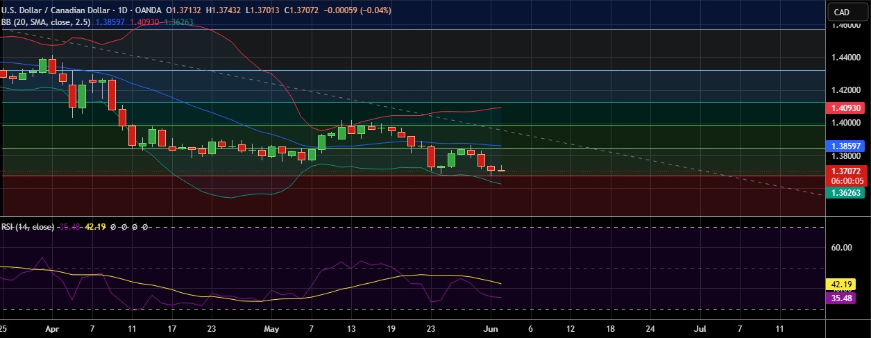 • USD/CAD traded in tight range on Tuesday as investors awaited clarity on U.S. tariff negotiations amid ongoing economic uncertainty.