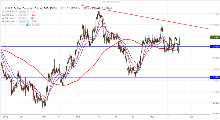 - USD/CAD has shown a good jump of more than 150 pips from the low of 1.27496 made yesterday as NAFTA uncertainty offsets higher oil price and better than expected Canada economic data. The pair hits intraday high of 1.28928 and is currently trading around 1.28879.