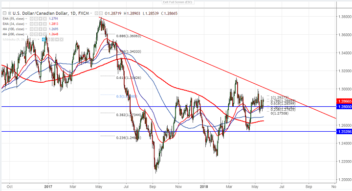 - USD/CAD has shown a good jump of more than 150 pips from the low of 1.27496 made on Friday on account of weaker than expected Canadian economic data. The pair hits high of 1.29113 on Friday and shown a minor decline from that level. It is currently trading around 1.28572.