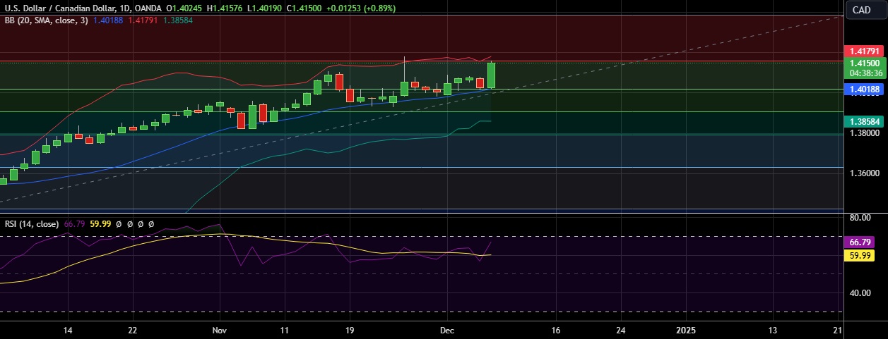 • USD/CAD rose higher on Friday as Canadian dollar weakened as a surge in Canada's unemployment rate fueled expectations of another significant interest rate cut from the Bank of Canada next week.