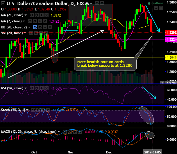 For now, more bearish rout is on cards on any break below supports at 1.3280 levels.