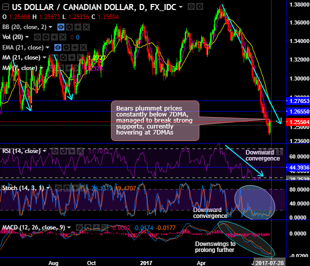 Bears plummet prices constantly below 7DMA and managed to break strong supports of 1.2765 and 1.2655 levels, currently hovering at 7DMAs.
