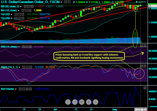 For instance, the pair experienced supports accurately at lower channel line 1.3057 with abundant volumes confirmation as well, while RSI and stochastic oscillators signify upswings are fine for the next targets at 1.3212 again. But for intraday selling sentiments are intensifying, debit put spreads on speculation grounds are advised to get benefitted from these swings and need to squared off the long option positions during US sessions after achieving 15-20 pips. Moreover, prevailing crude oil price slumps to drag loony a bit.
