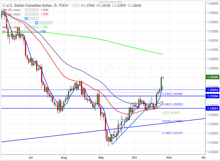 - Canadian Dollar tumbled sharply yesterday after Bank of Canada rate decision. Loonie has broken major resistance 1.27780 high made since Aug 15th 2017. The pair hits high of 1.28167 and is currently trading around 1.28048.