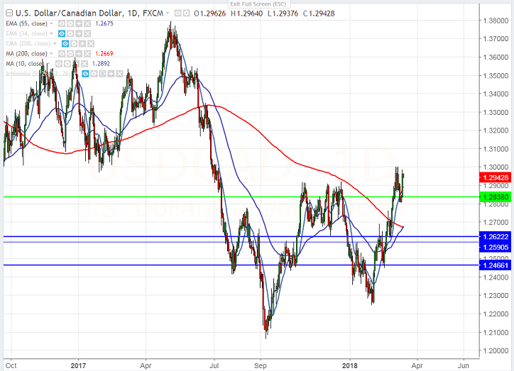 - USD/CAD shown a massive jump of 179 pips from the low of 1.28038. The pair jumped till 1.29845 almost near to 2018 high at 1.30013. Intraday trend is neutral/.The pair should break above 1.3000 for further upside. The main reason for decline in Canadian dollar is due to dovish statement by Bank of Canada Governor Stephen Poloz. It is currently trading around 1.29451.