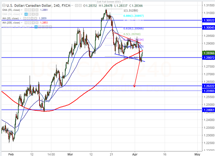- USD/CAD has declined almost more than 150 pips in this week from the high of 1.29407. The pair hits low of 1.27750 at the time of writing. The major dip was due to rising optimism in NAFTA trade deal. The pair shown a minor recovery after slightly better than expected US ADP employment data. The pair hits intraday high of 1.28467 and is currently trading around 1.28360.