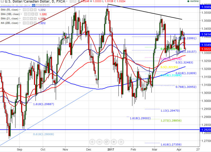 - Loonie formed a minor top around 1.35349 on Apr 9th 2017 and declined sharply from that level. It is currently trading around 1.33193.