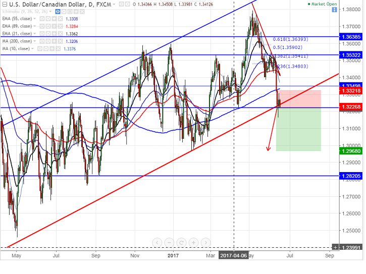 - The near term support is around 1.3220 and break below confirms start of minor bearishness. Any break below minor bottom 1.31640 will drag the pair till 1.2968 level. Any close below confirms the top formed at 1.37935 and a decline till 1.2968 (Jan 31st 2017 low) likely.