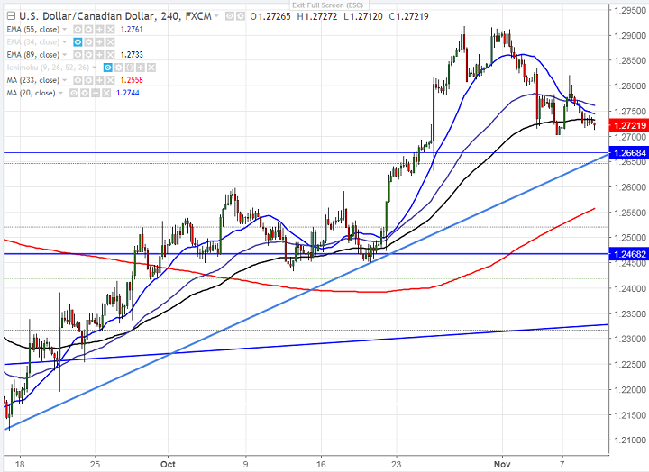 - Canadian dollar has shown a minor bullishness yesterday after better than expected Canada Housing starts and Building permits data. USD/CAD declined after showing minor jump till 1.28160 and is currently trading around 1.27214.
