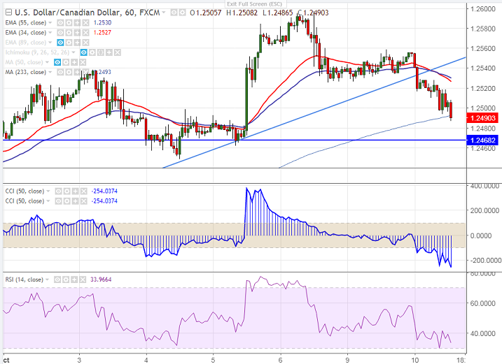 - The near term support is around 1.2480 and any break below will drag the pair down till 1.2460/1.24180.