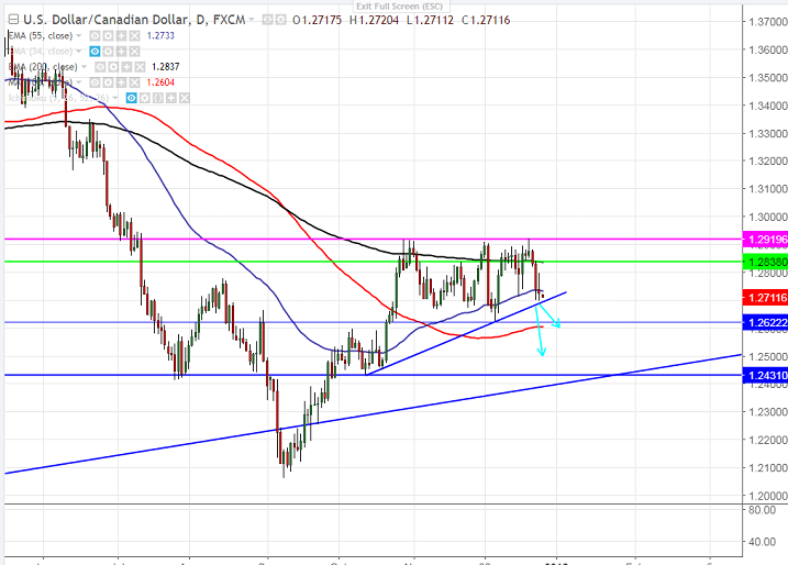 - almost 200 pips in previous week on better than expected Canadian economic data. The pair hits low of 1.26995 on Friday and is currently trading around 1.27122.