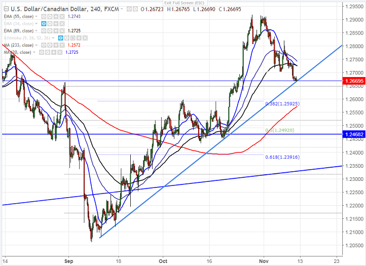 - Canadian dollar has shown a major recovery yesterday after US Senate informed that there are planning to delay corporate tax cuts. USD/CAD declined sharply and broken major support at 1.27000 and is currently trading around 1.26709.