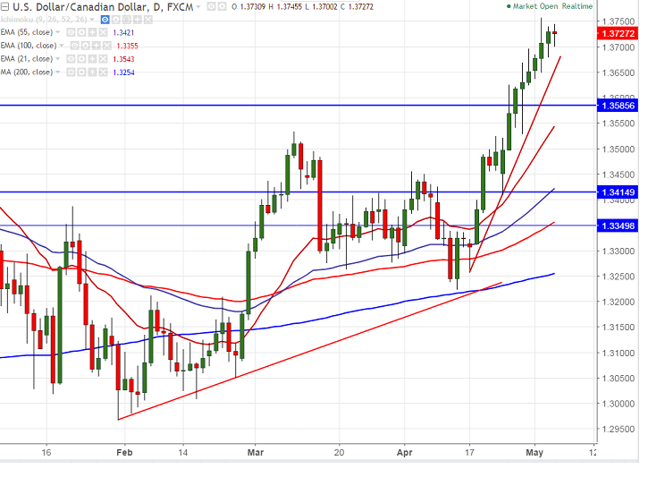 - The Canadian dollar shown mild consolidation after hitting low of 1.3754 on May 2nd 2017.It is trading between 1.3754 and 1.3679 for the past two trading session. It is currently trading around 1.37187.