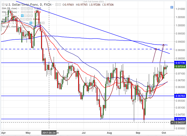 - The near term resistance is around 0.97730 (Aug 8th 2017 high) and any convincing close above will take the pair to next level till 0.9808/0.9845/0.9900.
