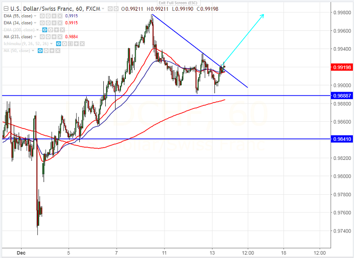 - USD/CHF has formed a temporary top around 0.99777 and started to decline from that level. The pair declined till 0.98909 and is currently trading around 0.99200.