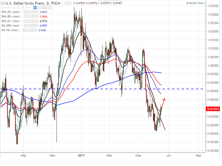 - Technically the pair has been facing strong resistance around 0.98080 (May 30th 2017 high) and any close above will take the pair till 0.9845/0.9900.