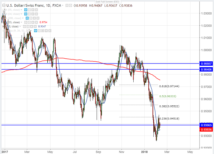 - USD/CHF has declined more than 100 pips from the yesterday high of 0.94701. The pair declined till 0.93484 and is currently trading around 0.93840.