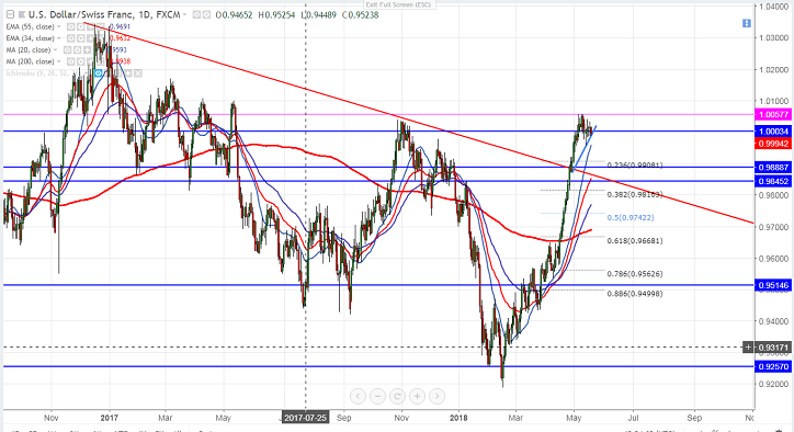 - USDCHF has shown a minor decline till 0.99575 and started to recover from that level. The pair almost formed almost a double top at 1.00560 and started to consolidate within narrow range. Any convincing break below 0.9945 (20- day MA) confirms minor weakness and a dip till 0.9900 is possible.