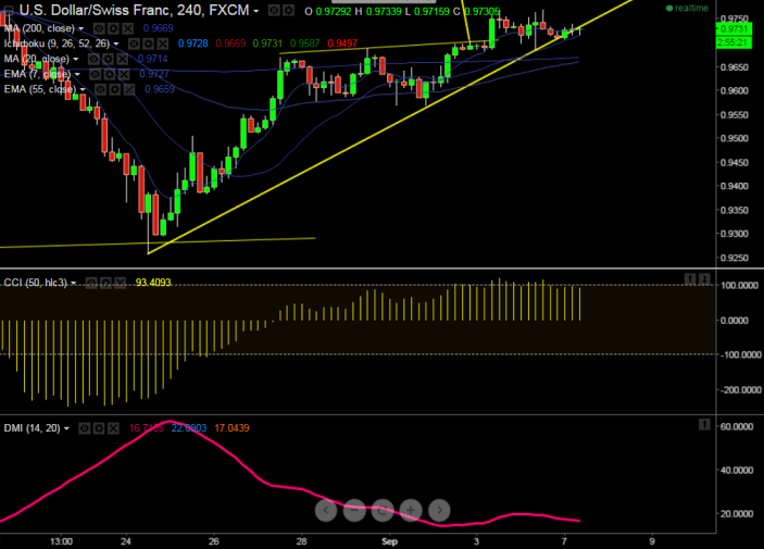 USD/CHF has retreated till 0.97074 after making a high of 0.9770 . Overall trend is still bullish as long as support 0.9680 holds.