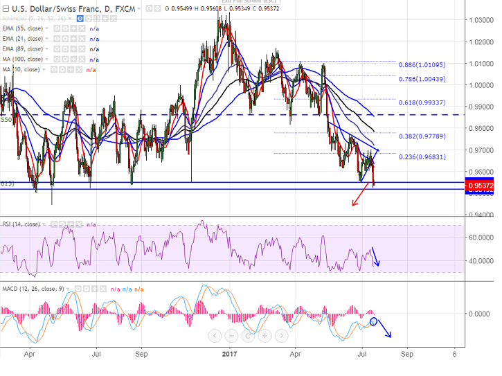 - The low formed on Jun 23rd 2016 will be acting as major support and any break below will drag the pair till 0.9440. Overall bullish invalidation only below 0.9440. Any violation below 0.9440 will drag the pair further down till 0.9260.
