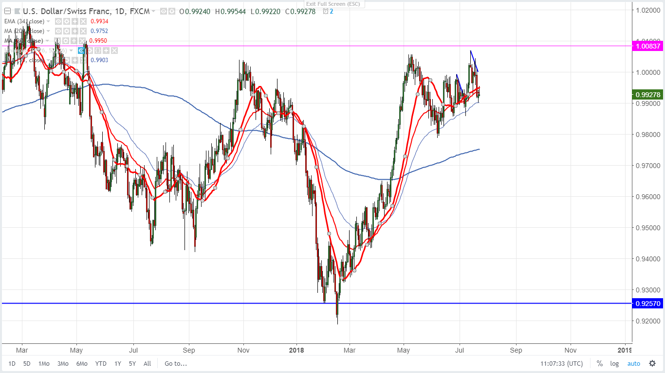 - USD/CHF has shown a minor jump after hitting low of 0.99010. The pair has declined more than 140 pips from the high of 1.00434 made on Jul 19th 2018. The escalating trade war between US and China and comments by Donald Trump on fed has increased broad based US Dollar selling. But US dollar has shown a good jump after Donald Trump and his aides has told to fox news that US economy is to grow at 4.8% in Q2. The increasing trade war tension has increased demand of safe haven asset like yen, Swiss franc and gold. US 10 year bond yield recovered more than 3% from yesterday low of 2.823%. US 2- year yield pared some of its gain after hitting 10 year high at 2.640% and spread between US -2 year and US 10 year yield has increased from 23 basis point to 34 basis point. The downside is capped due to policy divergence between US fed and SNB.The pair hits low of 0.99010. It is currently trading around 0.99192.