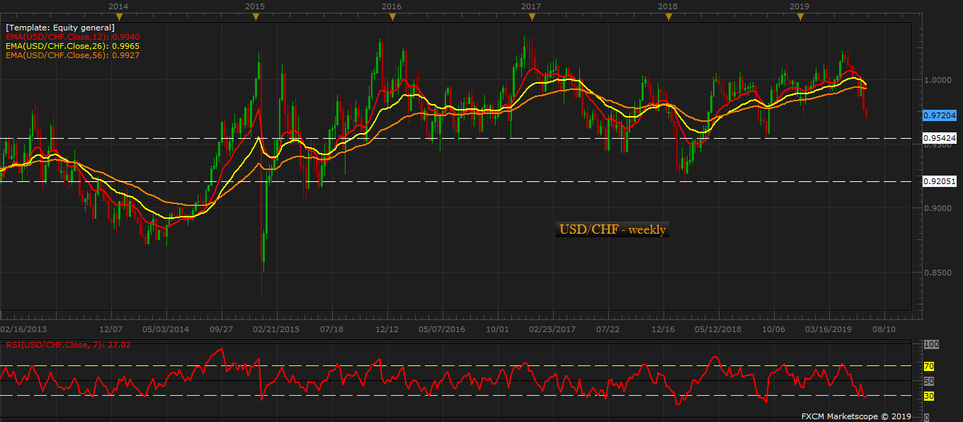 Thanks to the recent weakness in the value of USD against a wide range of currencies has helped the USD/CHF bears to regain control from the bulls. The bears have been gaining control since May, as the rate declined from 1.024 area to 0.99 area. However, the dovish comments from the U.S. Federal Reserve accompany with a dovish rate cut forecast to the tune of 50 bps has given the final push.