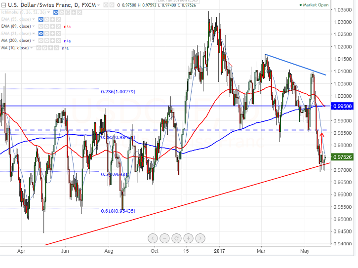 - USD/CHF shown a minor recovery after forming a double bottom around 0.96900. The pair makes the low of 0.96938 and is currently trading around 0.97659.