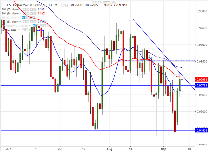 - USD/CHF has rallied till 0.96182 yesterday and has shown a minor selling from that level. The pair is currently trading around 0.95926.